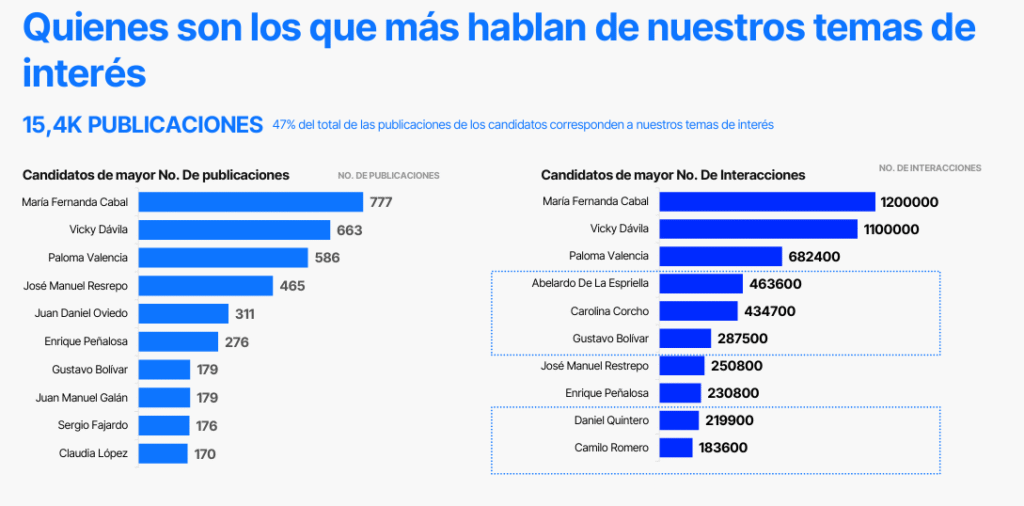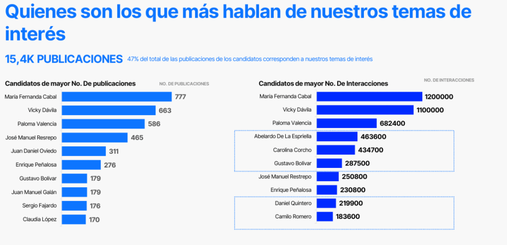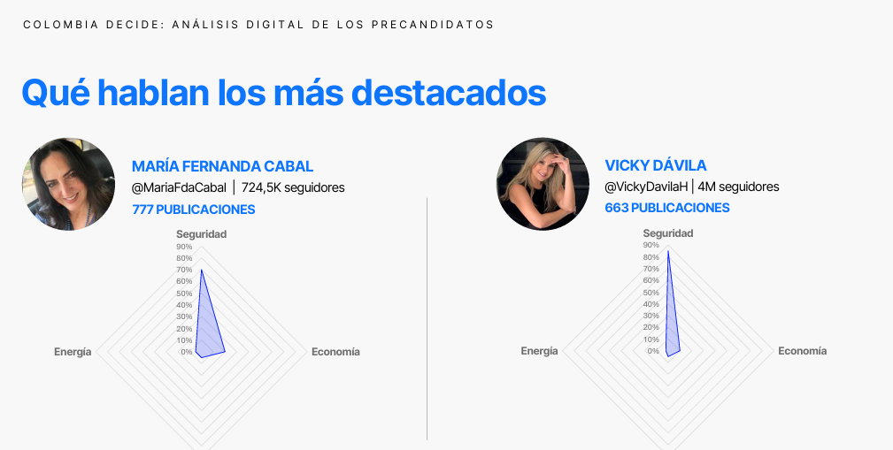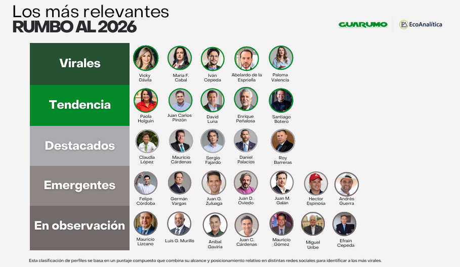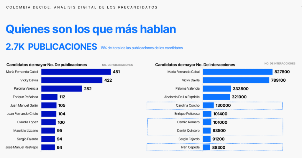 El estudio, que analiza las búsquedas en Google y la actividad en redes sociales, identifica a Maria Fernanda Cabal, Vicky Dávila, Abelardo de la Espriella, entre los nombres más influyentes del panorama digital, en un contexto donde la visibilidad en línea empieza a traducirse en capital político real.