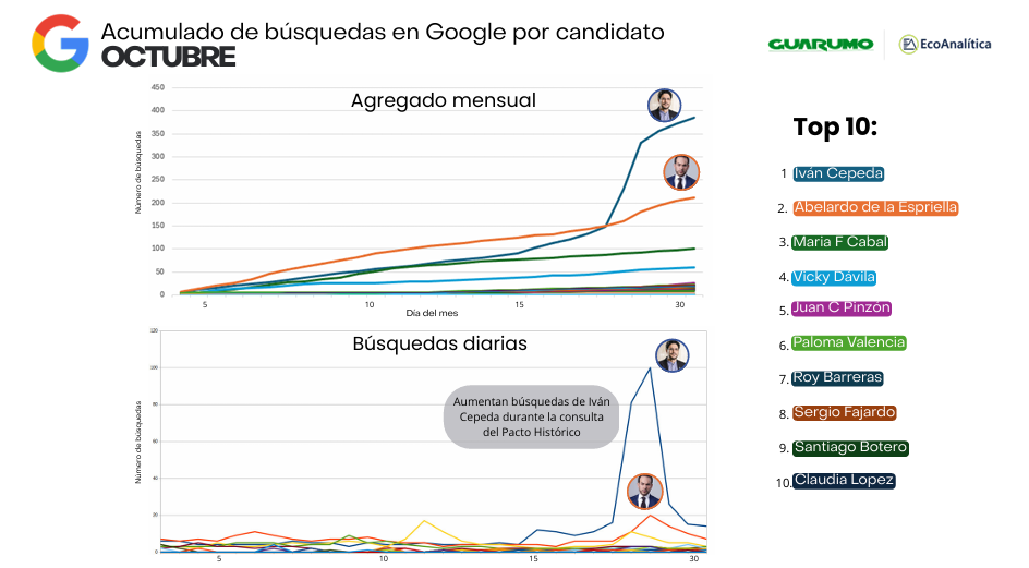 En cuanto al acumilado en la búsqueda de Google es estudio también destaca candidatos que son de interés del público.
