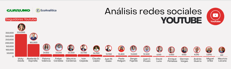 El abogado Abelardo de la Espriella, junto con Paloma Valencia, también figuran entre los más activos en YouTube, manteniendo comunidades estables aunque con menor viralidad.