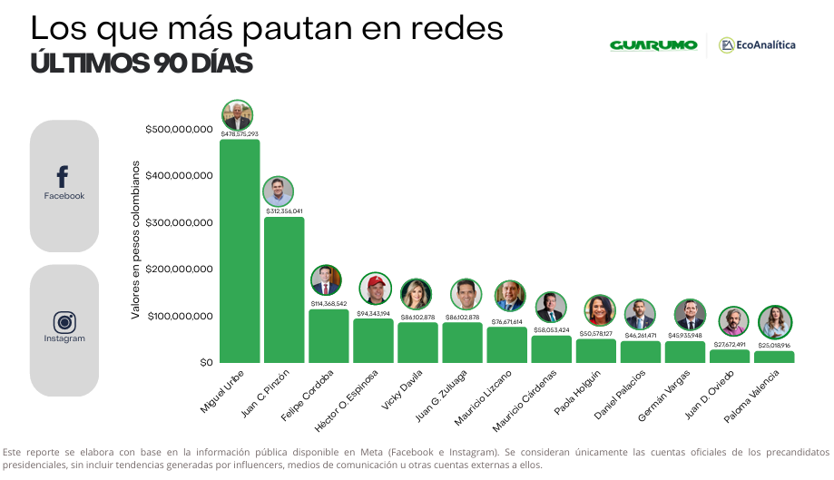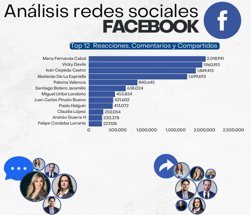 Cabal encabeza Facebook; Dávila y De la Espriella destacan en otras plataformas
