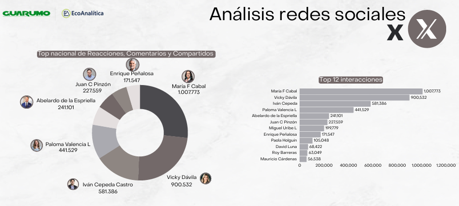 En la red X (antes Twitter), el senador Iván Cepeda concentra un alto volumen de menciones, pero con un nivel de engagement inferior al de sus competidores del centro y la derecha. El estudio también destaca que las cuentas cercanas al Gobierno mantienen alto flujo de publicaciones, pero baja conexión emocional, reflejando una brecha entre discurso y ciudadanía.