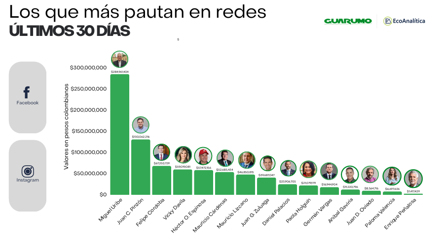 Candidatos como Miguel Uribe Londoño destinan recursos significativos a la pauta en redes, pero sin lograr interacción genuina. Esto evidencia una dependencia artificial del alcance pago y la falta de comunidades auténticas.