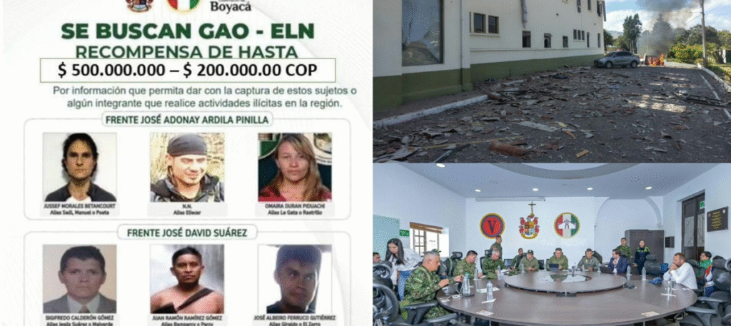 El oficial ofreció hasta 500 millones de pesos por el cabecilla del grupo armado responsable del ataque. También se establecieron líneas de comunicación para aportar información que permita avanzar en la investigación y precisó que la Gobernación de Boyacá entregará 100 millones de pesos adicionales por los demás integrantes de la estructura, señalados como alias Diéser, alias Omaira o la Gata, alias Jesús Suárez o Malverde, alias Van Percy y alias Giraldo o el Zorro.