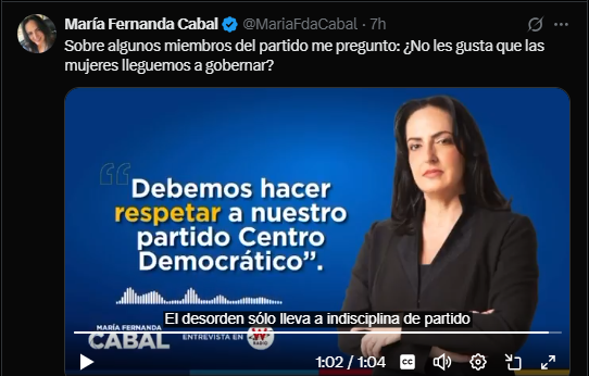 María Fernanda Cabal cuestiona el trato hacia las mujeres en el partido y advierte que la fractura interna podría costarles el 2026.
