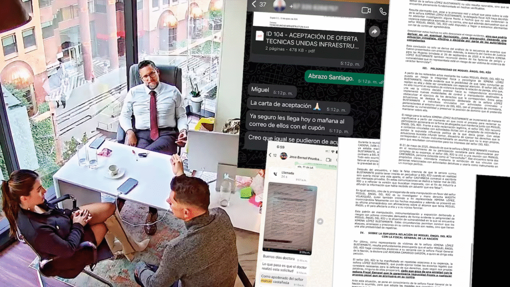 Ximena Bustamante afirma que fue “puesta en escena” en su propia oficina, con cámaras de seguridad registrando una reunión en la que Manuel Castañeda señala que Diego Cadena lo buscó para “joder” a Del Río, según investigación de Semana. Además, según la denuncia, el objetivo no era solo desacreditar al abogado Cadena, sino también posicionar una narrativa en contra el expresidente Uribe.