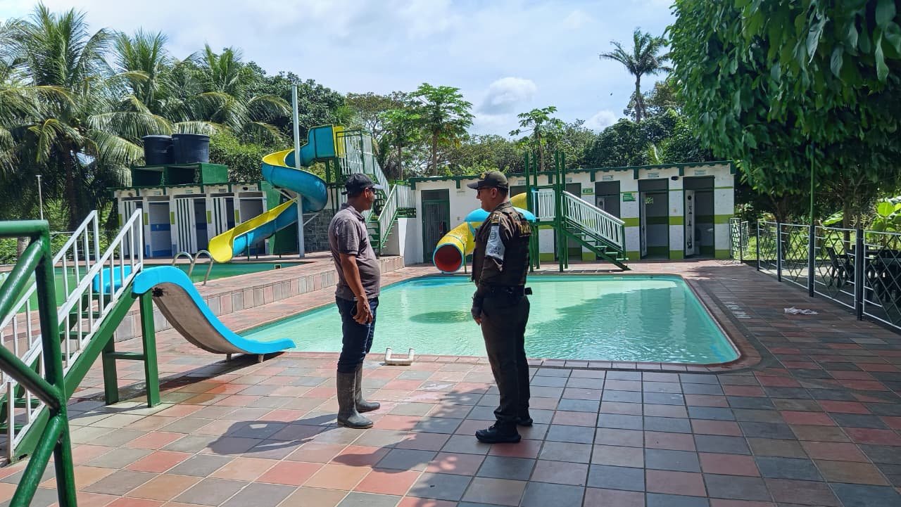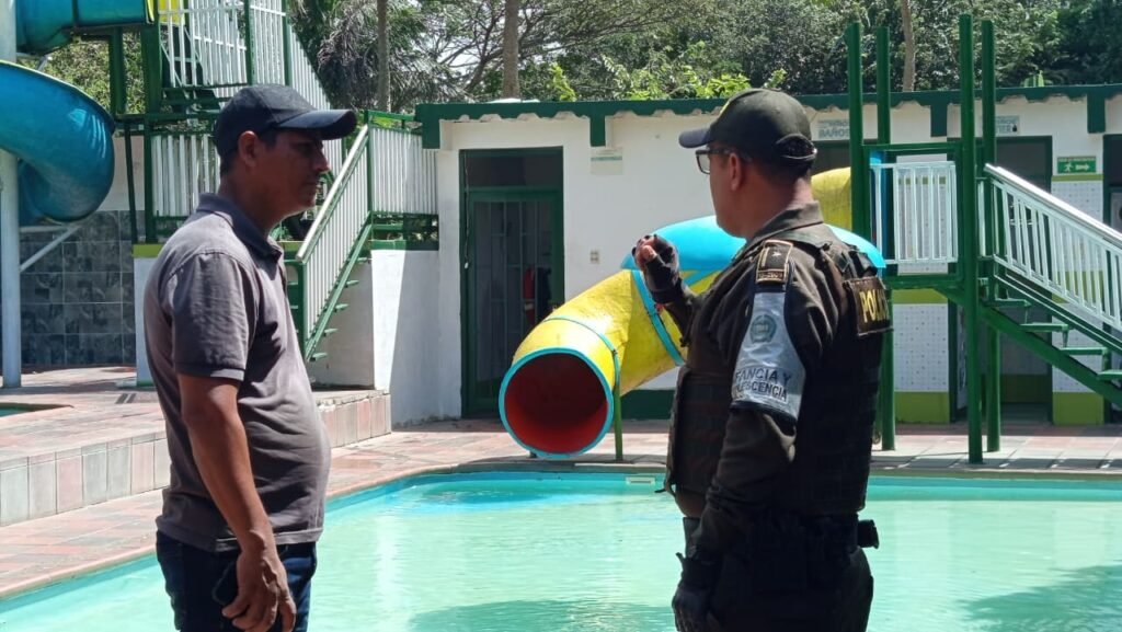 Durante la actividad, los uniformados realizaron inspecciones en estos espacios recreativos, impartiendo recomendaciones de seguridad conforme a la Ley 1209 de 2008, que regula el uso y funcionamiento de piscinas, con el fin de minimizar riesgos para los usuarios.