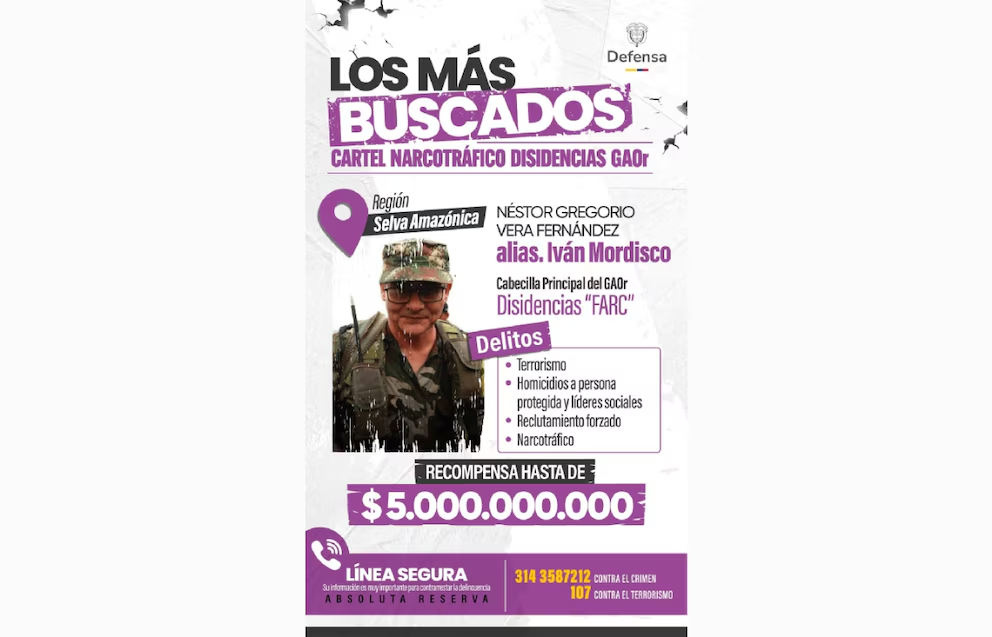 Finalmente, el Gobierno reiteró el anuncio de recompensas millonarias por los principales cabecillas de las disidencias: hasta 5.000 millones de pesos por alias “Iván Mordisco” y 4.500 millones por alias “Marlon”, señalado como jefe de la estructura en Cauca.
