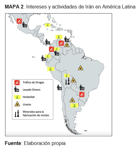 En el hemisferio occidental, el documento señala al régimen venezolano y al denominado Cártel de los Soles como piezas clave en la protección y logística para la exportación de cocaína, armas, oro ilegal y combustible hacia el Caribe, África y Europa. Esta red también estaría involucrada en la protección de operativos de Hezbolá en Venezuela, especialmente en regiones como Guárico, Apure y Caracas, así como en zonas de Colombia.