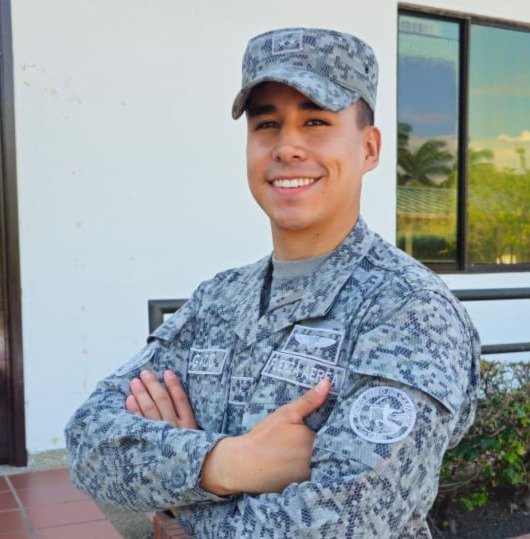 Nacido en Pasto, Nariño, ingresó en el año 2017 a la Escuela Militar de Aviación Marco Fidel Suárez, donde durante cuatro años se formó como oficial del Cuerpo Logístico de la Fuerza Aeroespacial Colombiana, FAC. Fue en este proceso de formación donde encontró en la especialidad de Acción Integral el camino para canalizar su vocación de servicio, al comprender que, desde esta labor, podía aportar de manera directa al bienestar de las comunidades y a la construcción de país. Cuatro años después, al graduarse, inició su vida profesional como Oficial con la convicción de que el uniforme representa servicio, compromiso y responsabilidad social.