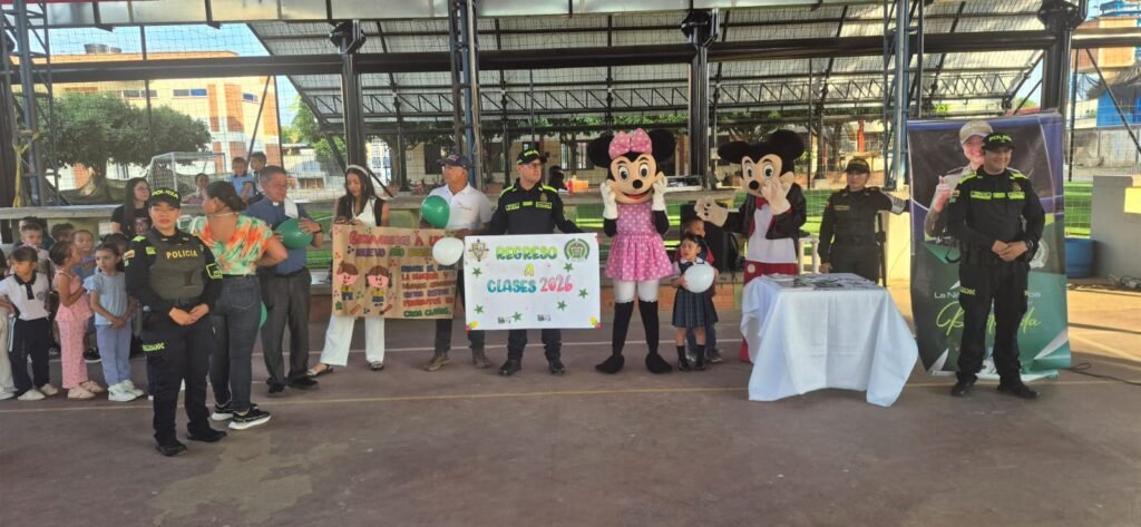 Durante la actividad se dio la bienvenida a la comunidad educativa, se entregó material informativo y se socializaron recomendaciones de seguridad, a través de un stand institucional que contó con la participación de la alcaldesa municipal, la comisaria de familia, el gestor de convivencia ciudadana, el comandante de estación, y uniformados de Infancia y Adolescencia y Policía Comunitaria.
