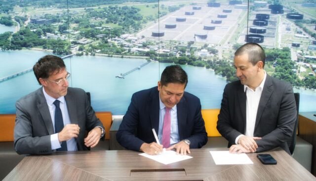 En la imagen, de izquierda a derecha, Diego Pérez Claramunt, presidente & Country Manager, Colombia, Gran Tierra Energy; Juan Carlos Hurtado, vicepresidente Ejecutivo de Hidrocarburos de Ecopetrol; Julián Fernando Lemos, vicepresidente Corporativo de Estrategia y Nuevos Negocios de Ecopetrol.