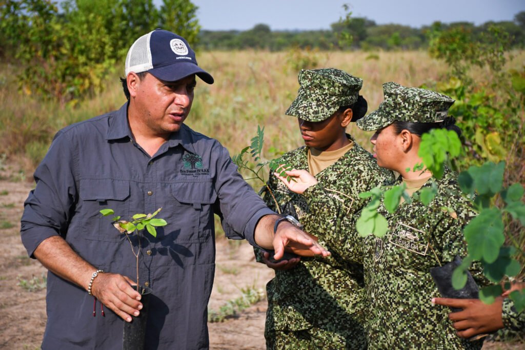 Con esta jornada se completan seis hectáreas reforestadas y 7.000 árboles plantados en el último año, es una acción que fortalece la protección ambiental en la Orinoquía, la Armada de Colombia lidera una jornada de reforestación en el departamento del Vichada, donde fueron sembrados 1.370 árboles nativos en un área de 1.25 hectáreas del Cantón Militar Jabalí Rojo, en Puerto Carreño, en una zona cercana a la ribera del río Bita, declarado sitio Ramsar por su importancia ecológica internacional.